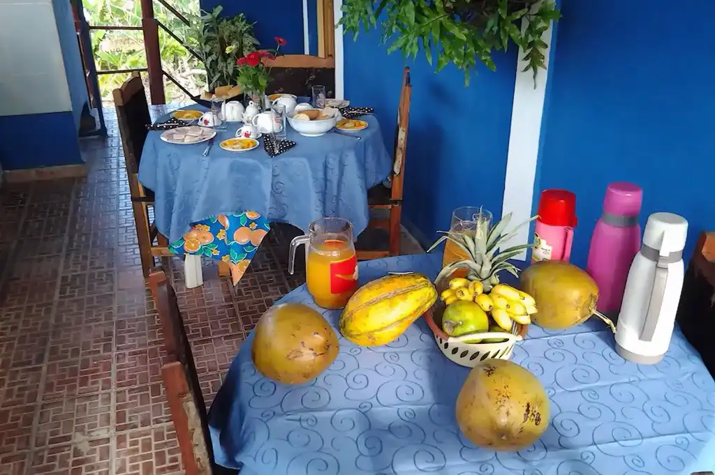 Todos los días se sirve un desayuno buffet. El bed and breakfast alberga un restaurante que sirve parrilladas a la parrilla y cocina local y mariscos. Se puede solicitar una opción vegana.