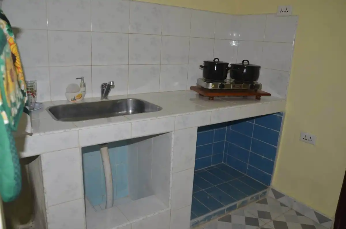 La casa, de arquitectura moderna, muestra una cerca perimetral simulando el ladrillo y las antiguos portones de hierro, dando entrada a un portal con paredes revestidas de loza jaimanita para lograr la combinación perfecta de una casa de playa, en un costado se encuentra la ducha de playa la cual lleva a un pasillo que conduce al apartamento rentable, la decoración casera y sencilla, luego está la cocina equipada con lo necesario, separa esto de la habitación con la decoración ambiental de colores tenues y climatizada, cuenta con un closet con gaveteros, dos camas una camera y una personal, televisión nacional, con cuarto de baño privado agua fría y caliente. Todo esto ofrece confort y comodidad a nuestros clientes, servicio personalizado, seguridad y un ambiente familiar.