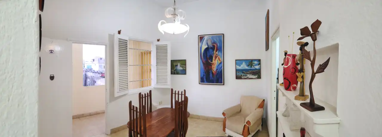Hostal aposento alto, ubicado en el centro del Vedado, una de las zonas más modernas de la ciudad. Totalmente independiente, renovado con mucha pasión manteniendo lo antiguo del inmueble, usando elementos y toques de modernidad, con ambientes frescos, ventilado, y gran confort haciendo una experiencia única. Rodeados de excelentes sitios a visitar, restaurantes, bares, clubs nocturnos, a unos minutos de la Plaza de la Revolución, Malecón, Hotel Nacional y a unos 30 min del aeropuerto.
