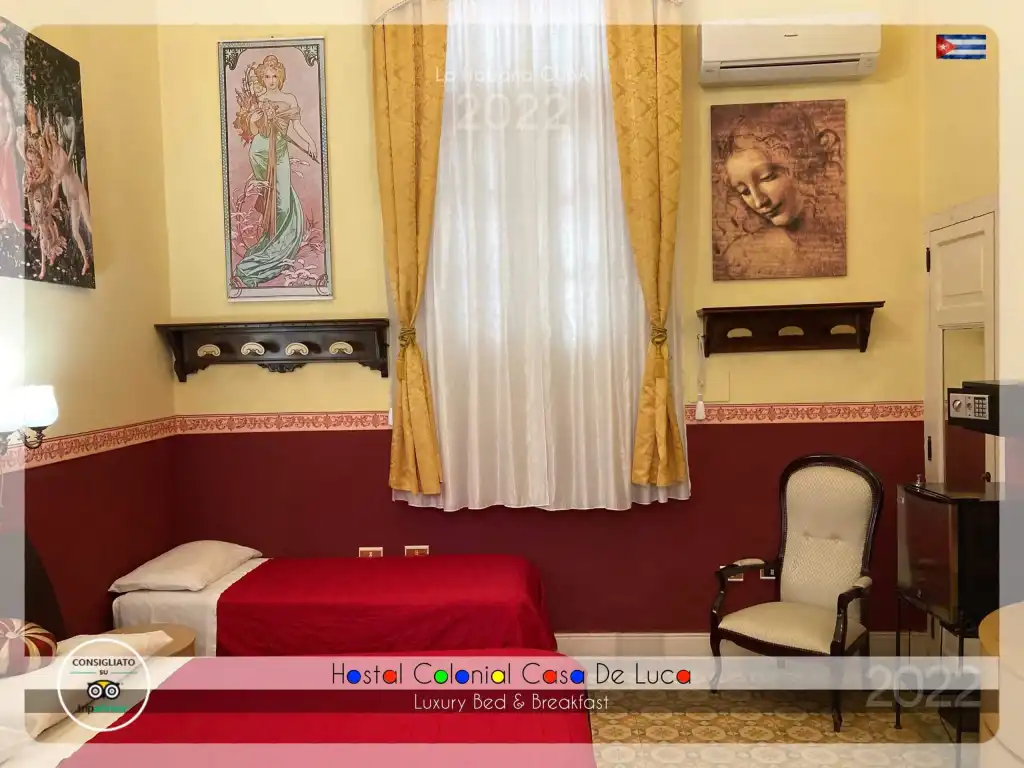 The B&B is managed by Wilson and Diamela, a friendly Cuban couple. you will find their pertrait in the opening slideshow. With discretion, kindness and availability they will offer you all the necessary assistance to make pleasant your stay in the Cuban capital. They will always be at your disposal for any need and, if necessary always ready to give advice and valuable suggestions. The structure consists of an ancient colonial house dating from 1929 completely renovated in full respect of its original architecture, so you will take a big step back in time. All apartments are equipped with the best possible comfort (air conditioning, digital terrestrial TV, fridge in the room) and very broad bathrooms equipped with central heate. Bed Breakfast. Hostal Colonial Casa De Luca