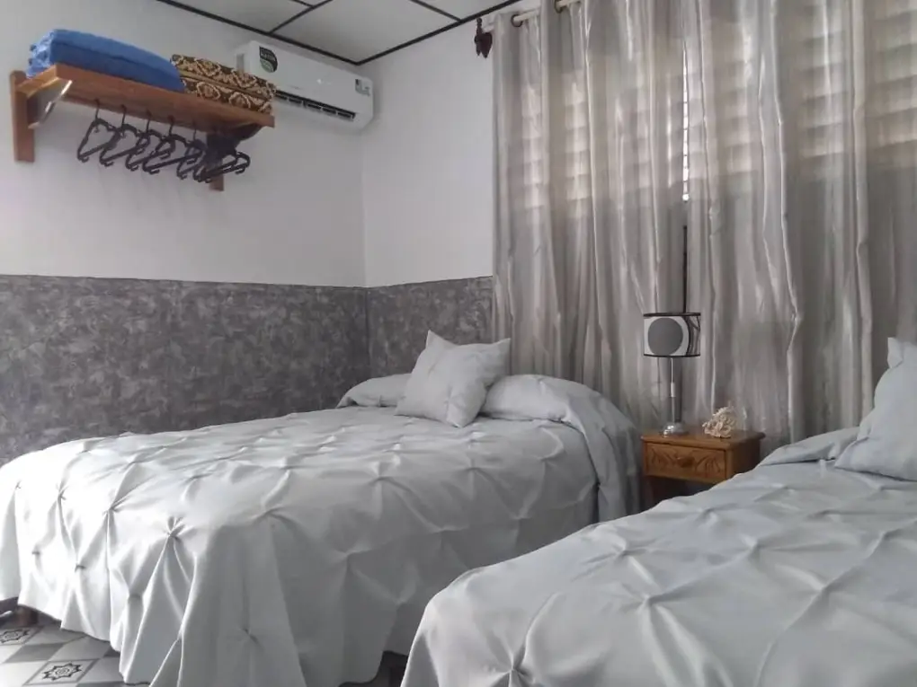 Habitaciones independientes con capacidad para tres huéspedes cada una. Las habitaciones están climatizadas, cuentan con baño privado, agua fría y caliente, servicio diario a la habitación, nevera, parqueo, acceso a la terraza ranchón y entrada independiente.