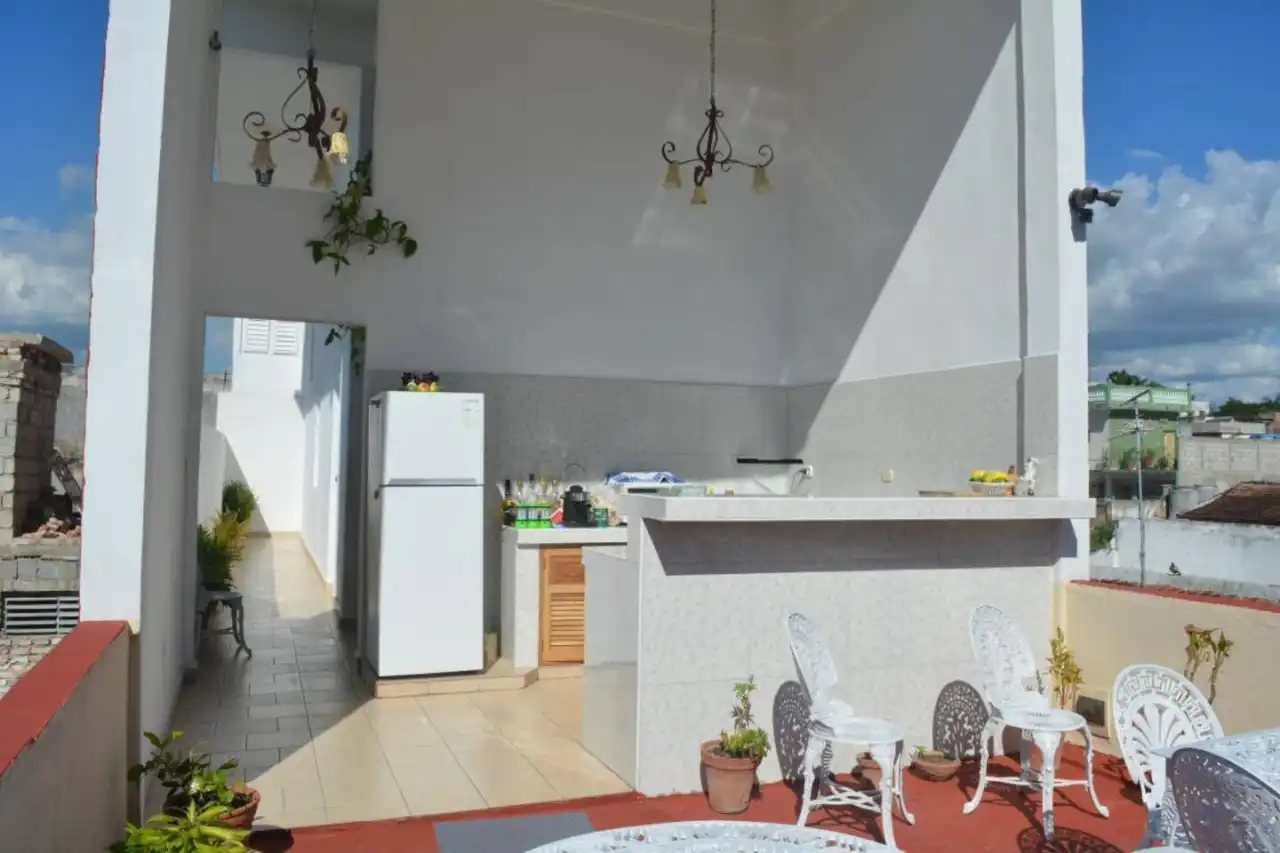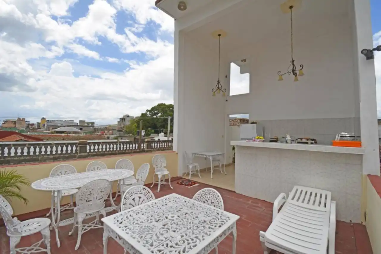 También ofrecemos sala con wifi y terraza-cocina, donde se sirve el desayuno, cenas, cócteles típicos cubanos los cuales podrán disfrutar al aire libre y con vistas a nuestra ciudad.