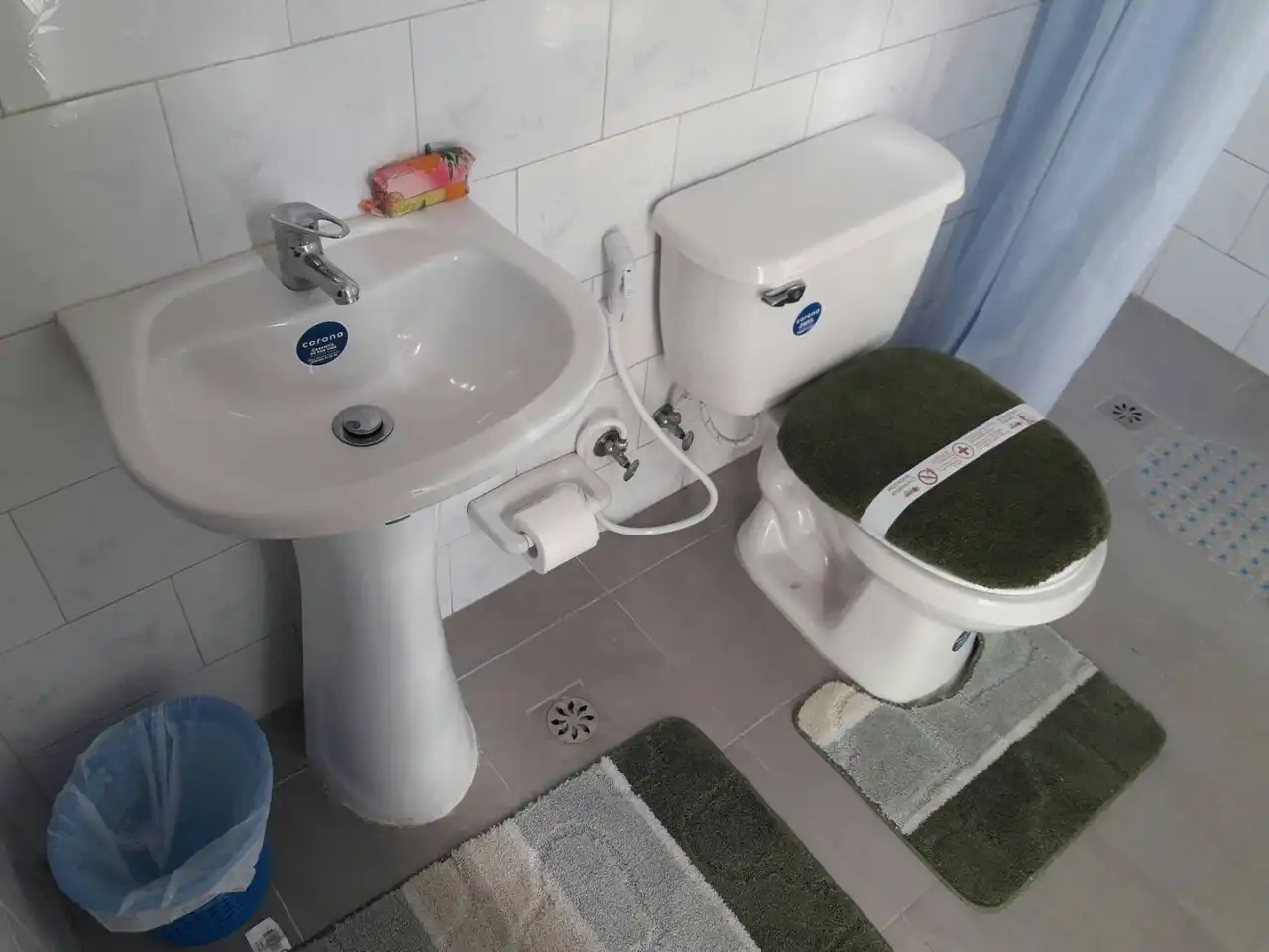 El cuarto de baño es amplio, con calentador central brindando agua fría y caliente las 24 horas.