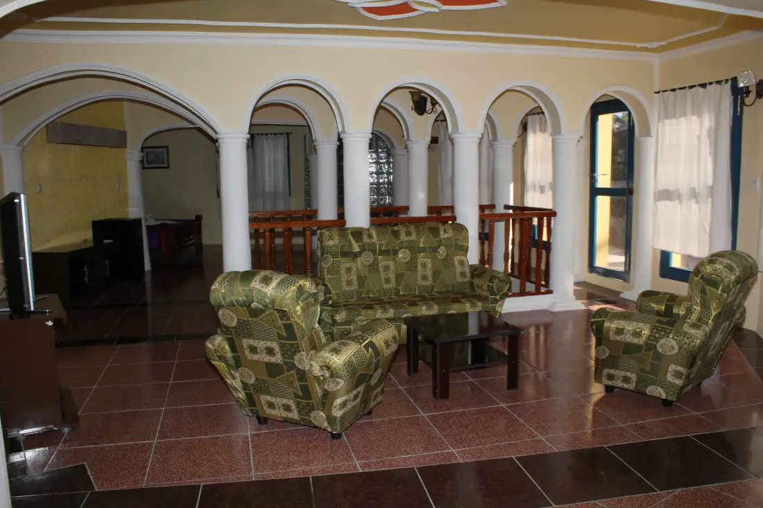 La casa consta con un total de 1900 metros cuadrados, todas sus áreas están destinadas para la recreación y deleite de nuestros huéspedes, dígase patio, bar o restaurant. Primeramente, tenemos el área de recepción y lobby, continuada por un restaurant estilo ranchón donde ofrecemos los desayunos, almuerzos y cenas según el cliente prefiera. La Casa está ambientada con plantas ornamentales aportando detalles hogareños tropicales modernos perfectos para las familias; aquellos que disfrutan de la lectura encontraran relajantes áreas en el patio o terrazas pertenecientes a las habitaciones. Existe una segunda zona rodeada por hermosas Palmeras donde destaca una piscina circular con 10 metros de diámetro y varias tumbonas dispersas por todo el alrededor. El staff de Hostal Las Palmas siempre está listo para brindar el mejor servicio a sus huéspedes.