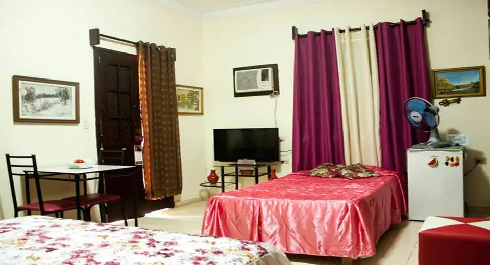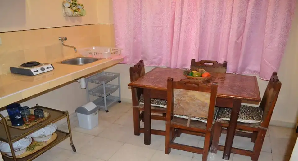Cuenta con tres habitaciones disponibles para ser alquiladas (30€/noche), todas con entrada independiente, y un amplio jardín, con frutales, plantas ornamentales y flores. Las habitaciones son amplias, frescas con climatización, baños privados, agua fría y caliente, mini bar, televisión. Dos de las habitaciones, son habitaciones dobles con una cama matrimonial y una individual, ambas con baño privado. La tercera habitación es un mini apartamento que cuenta con dos camas: una matrimonial y otra individual, baño privado y cocina comedor.